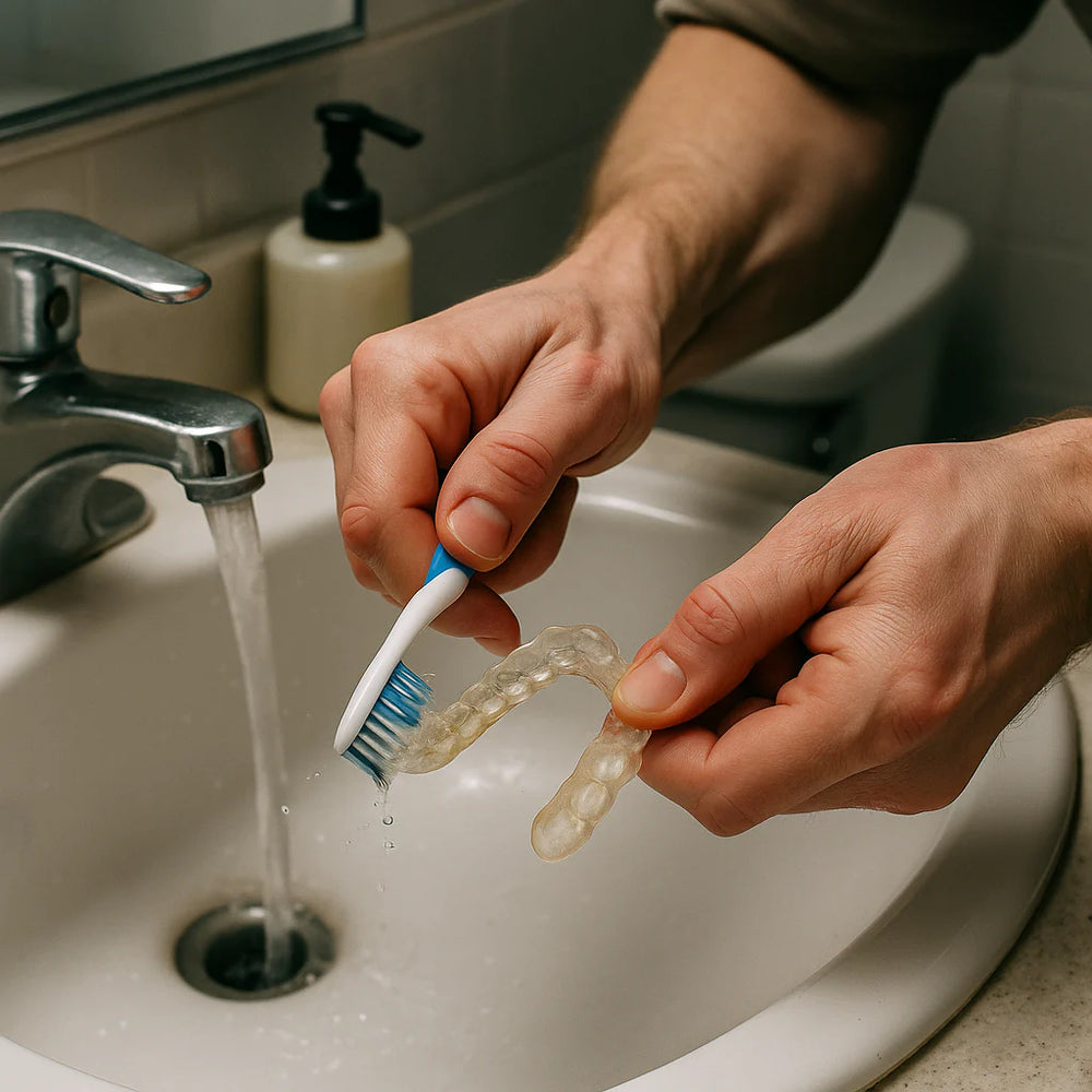 Your aligners stay invisible throughout their entire lifespan. Daily 3 minute cleans eliminate the cloudy buildup and yellow tinge that makes "clear" aligners embarrassingly visible